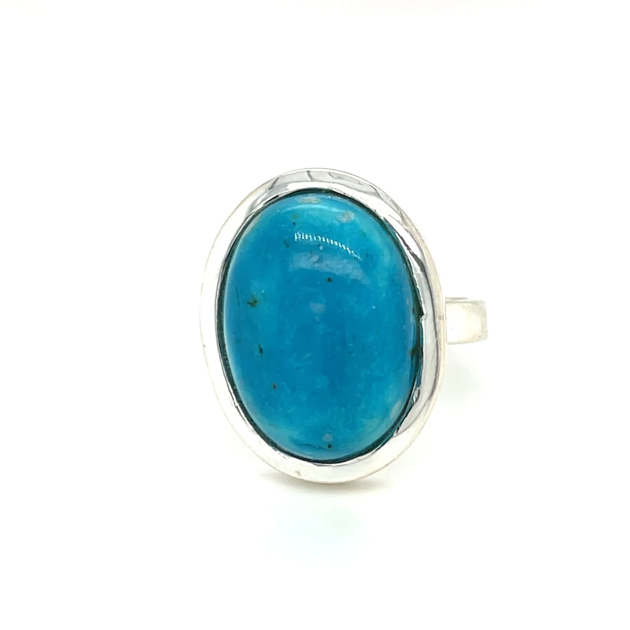 Our stunning Turquoise Bezel Set Sterling Silver Ring is a piece that embodies the essence of summer, fun, and pure happiness. This vibrant turquoise ring will not only adorn your finger but also brighten your spirit, much like the endless blue skies and tranquil seas.